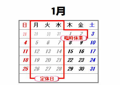 年始は3日(土曜)から営業いたします。